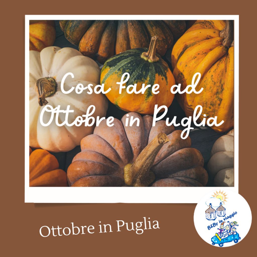 Ottobre in Puglia è un periodo magico. La folla estiva è ormai un ricordo, ma il clima resta ancora mite, perfetto per chi desidera esplorare la regione senza il caldo torrido e il caos dei mesi precedenti. Se stai cercando un luogo tranquillo dove trascorrere qualche giorno di relax, il B&B Beby in Viaggio è la scelta ideale perché al centro della Puglia, a pochi km dalle mete più ambite sia estive che invernali, dalle sagre e fiere internazionali. Ma cosa fare ad Ottobre in Puglia? Ecco quello che consiglio ai miei ospiti perché sono del pare che, solo chi vive un luogo può meglio consigliarti gli eventi autunnali pugliesi da non perdere!